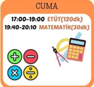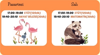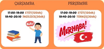 Hafta içi her gün isteğe bağlı 17:00-19:00 arası etütler yapılır.