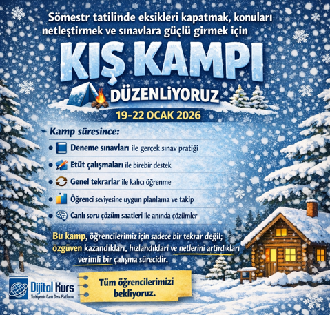 Sömestr tatilinde eksikleri kapatmak, konuları netleştirmek ve sınavlara güçlü girmek için Kış Kampı düzenliyoruz.